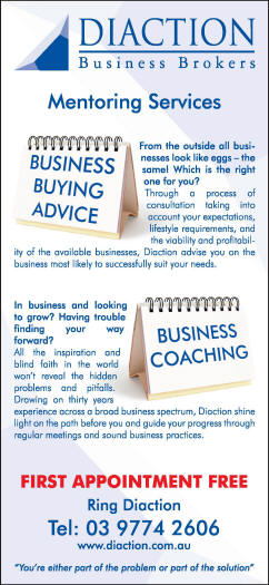 7 Key Benefits of Coaching• How to work on your business; • Review goals and develop an action plan; • Develop a workable business plan; • How to have the time to provide • Great ways to send your revenue soaring; • How to implement an exit strategy • The smart way to charge for your services; • How to systemise your business "Gain from the coaches who have actually run businesses" Your Board ChairmanAll businesses, whatever the structure need to run as a company, particularly if you wish to exit the business at some stage. Conducting board meetings to review management practices, determine strategies to grow the business and maintain minutes are all part of the corporate governance process that will enable you to achieve your goals. It is important to run your business as a company. Diaction can help you to arrange a board to run your business under your control and act as Chairman of your Board. The objective is to systemise your business, grow the business and develop a succession plan or exit strategy. We sometimes invest in the business where it fits our business model. Our experience in business includes: